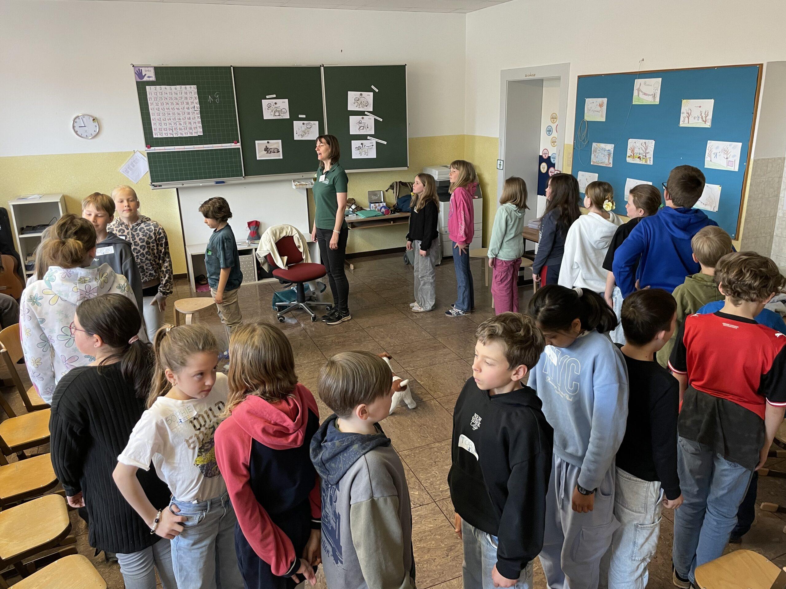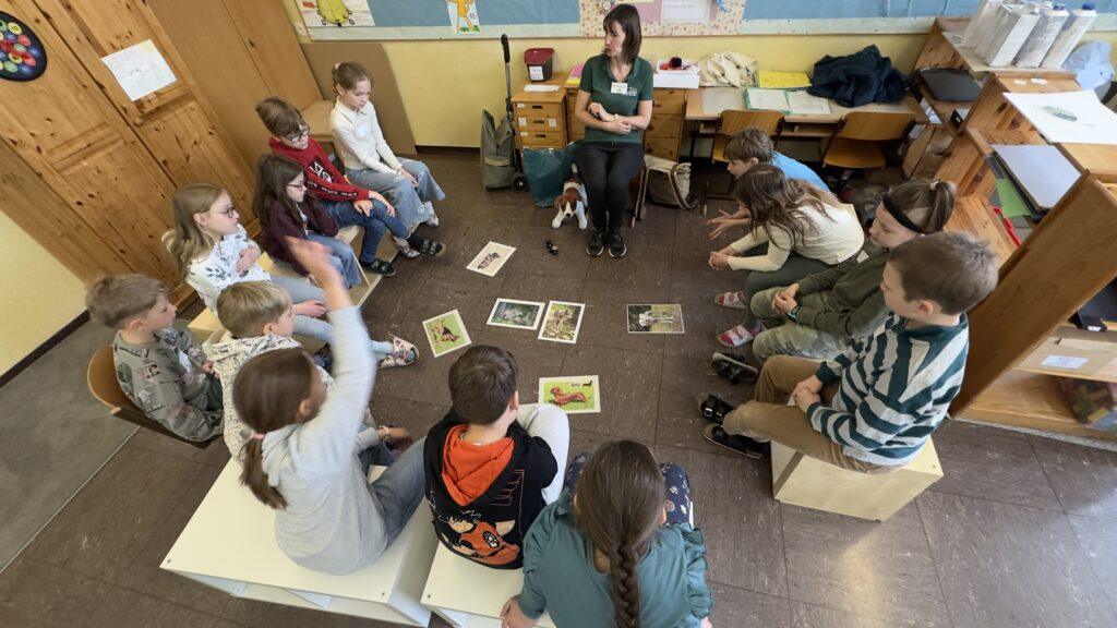 Im Rahmen der Tierschutzbildung lernten die 3. und 4. Klasse auf abwechslungsreiche Weise den sicheren und respektvollen Umgang mit Hunden.
